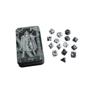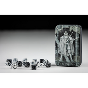 Abre esta lata y desata 15 dados en dos esquemas de color, con dados adicionales d8 y d10 que reflejan tu maestría en el combate. Y cuando llegue el momento de atacar con ventaja, tendrás dos d20 extra para aplastar a tus rivales con vigor implacable.