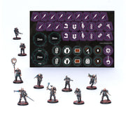 Dentro de la caja encontrarás también un set de 39 fichas para Hermanos de Progenie para que durante la partida puedas controlar fácilmente tu equipo y los efectos del juego en el fragor de la batalla.