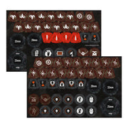 Dentro de la caja también encontrarás una hoja con 39 marcadores de doble cara de Expoliagores Impíos para que lleves fácilmente la cuenta de tu equipo y de los efectos en el juego en plena batalla.