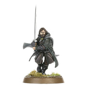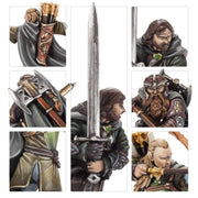 Este kit de plástico sirve para montar tres miniaturas Citadel que representan a Aragorn, Legolas y Gimli, los Tres Cazadores, tal y como aparecían en los muelles de Harlond en El Señor de los Anillos: El Retorno del Rey™.