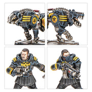 Este kit multicomponente de plástico permite construir un conjunto completo de líderes para tu fuerza de Enforcers, acompañados por cyber-mastiffs entrenados para rastrear y abatir criminales en los rincones más oscuros de la colmena.