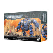 El Dreadnought Brutalis es, a la vez, un rompelíneas y un arma terrorífica. Este bípode de combate, pilotado por un héroe caído de su Capítulo, está armado para el combate cuerpo a cuerpo. Es una máquina de guerra descomunal que lanza una lluvia de fuego de cobertura a medida que avanza inexorablemente hacia las líneas enemigas, pero la principal amenaza reside en sus brazos enormes. Dado que cuentan con puños aplastantes o espolones revestidos de ceramita, pueden triturar a un guerrero acorazado como si se tratara de fruta podrida o abrirse paso a través de la pared de un búnker como si fuera de pergamino.