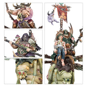 Las miniaturas vienen con 1 peana ovalada Citadel de 90x52,5 mm, 4 peanas redondas Citadel de 60 mm, 5 peanas redondas Citadel de 40 mm, 2 peanas redondas Citadel de 32 mm, 2 peanas redondas Citadel de 28,5 mm y 6 peanas redondas Citadel de 25 mm. Estas miniaturas se proporcionan sin montar y sin pintar.