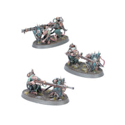 - 3 Mosquetes Jezzails: Los tiradores skaven más diestros usan Mosquetes Jezzails, que escupen muerte a distancia. Estos tiradores emplean gas de piedrabruja a alta presión para disparar esquirlas letales y acabar con los objetivos más impresionantes que puedan avistar.