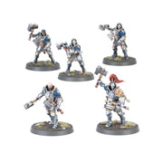 - 1 Lord Terminus con 1 Rememorador: Armado con un filo ejecutor sagrado, los Lords Terminuns cargan con la responsabilidad de dar descanso eterno a sus camaradas Forjados en la Tormenta.