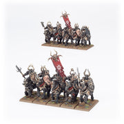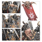 Esta caja te proporciona el núcleo de un poderoso ejército de Warriors of Chaos. En su centro están los Chaos Knights, campeones predilectos de los Poderes Ruinosos, ataviados con armaduras de hierro oscuro y montados sobre corceles enloquecidos. Estos poderosos guerreros cuentan con el apoyo de los Chaos Warriors, infantería de élite equipada con armas letales. Tanto los Chaos Warriors como los Knights incluyen una variedad de opciones de armas, así como componentes adicionales para convertir a miembros de sus unidades en campeones, portaestandartes y músicos. A estos implacables asesinos se les unen en la batalla dos Chaos Chariots. Forjados en hierro y bañados en sangre, nada que no sea el muro de un castillo puede detener su carga. También puedes montarlos como Gorebeast Chariots.