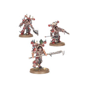 Los Devoradores de Mundos se han entregado por completo a Khorne. Algunos incluso permiten que entidades daemónicas los posean, otorgándoles un poder que va mucho más allá de sus limitaciones mortales. Tal es el caso de los Masacrejurados: una suerte de líderes que comparten sus cuerpos con el espíritu de un Devorador de Almas, que los muta y deforma hasta convertirlos en poco más que un arsenal viviente de espadas, garras y dientes rugientes. Sigue su estela un bestiario de guerreros furibundos, deseosos de desgarrar a sus enemigos miembro a miembro.