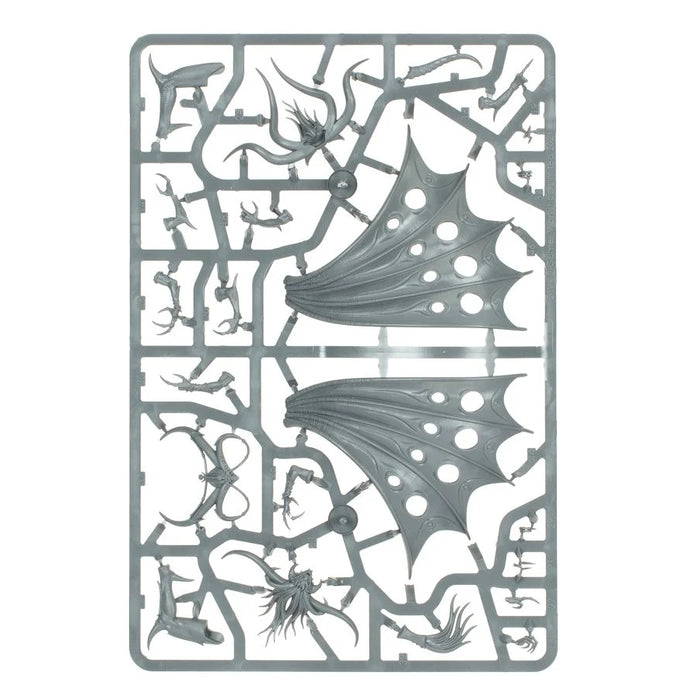 The kit is comprised of 50 plastic components, with which you can assemble one Dexcessa, the Talon of Slaanesh, and is supplied with a Citadel 105mm Oval Base. This model can alternatively be assembled as Synessa, the Voice of Slaanesh or Synessa, the Voice of Slaanesh.