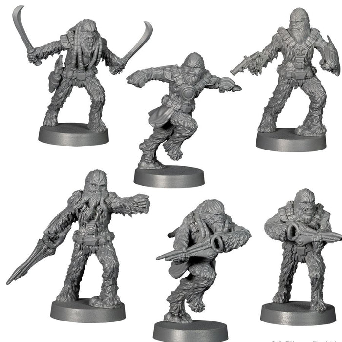 La expansión de la unidad Wookiee Warriors pone a tu disposición seis miniaturas de Wookiee Warrior que se pueden ensamblar y usar de varias maneras, incluso como una unidad de corto alcance que lleva cuchillas ryyk y pistolas Kashyyk o una unidad de francotiradores Wookiee que disparan carabinas X1. No importa cómo montes tus miniaturas, cuatro cartas de mejora te invitan a desplegar estas unidades para las facciones de la República y Rebelde. Además, una miniatura que representa a un Wookiee Chieftain puede entrar en combate como comandante de la República y una quinta carta de unidad y tres cartas de mando les permiten influir aún más en tu estrategia. Finalmente, ocho cartas de actualización te invitan a personalizar tus unidades con wookiees que llevan una gran variedad de armamento.